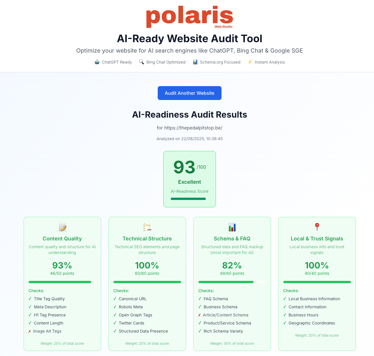 En daarom is het naast SEO optimalisatie ook nodig om ook hier rekening mee te houden. Als je site al geoptimaliseerd is voor SEO dan is het grootste werk gelukkig al gedaan. Maar vergeet de schemas niet! Controleer je eigen website nu zelf helemaal gratis via mijn GEO audit tool. Deze tool geeft je direct aan waar de verbeterpunten zitten en geeft een concreet actieplan.