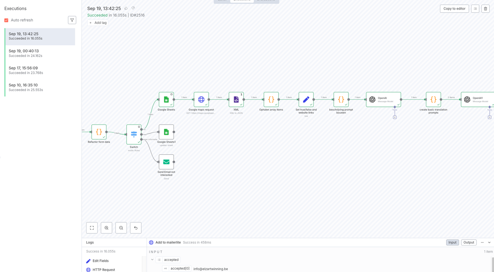 - Outreach & Automatisatie: Via een geautomatiseerde flow ontvangen horeca-uitbaters een uitnodiging om een vragenlijst in te vullen. De antwoorden worden rechtstreeks gekoppeld aan het CMS, waardoor listings snel en correct gevuld worden.